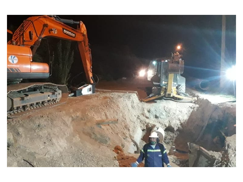 En este aspecto, gracias la utilización de un nuevo equipo de bombeo adquirido recientemente por Aguas Rionegrinas se pudo acelerar notablemente el proceso de vaciamiento del ducto y ya se está trabajando en la colocación de las nuevas piezas para vincular el acueducto.