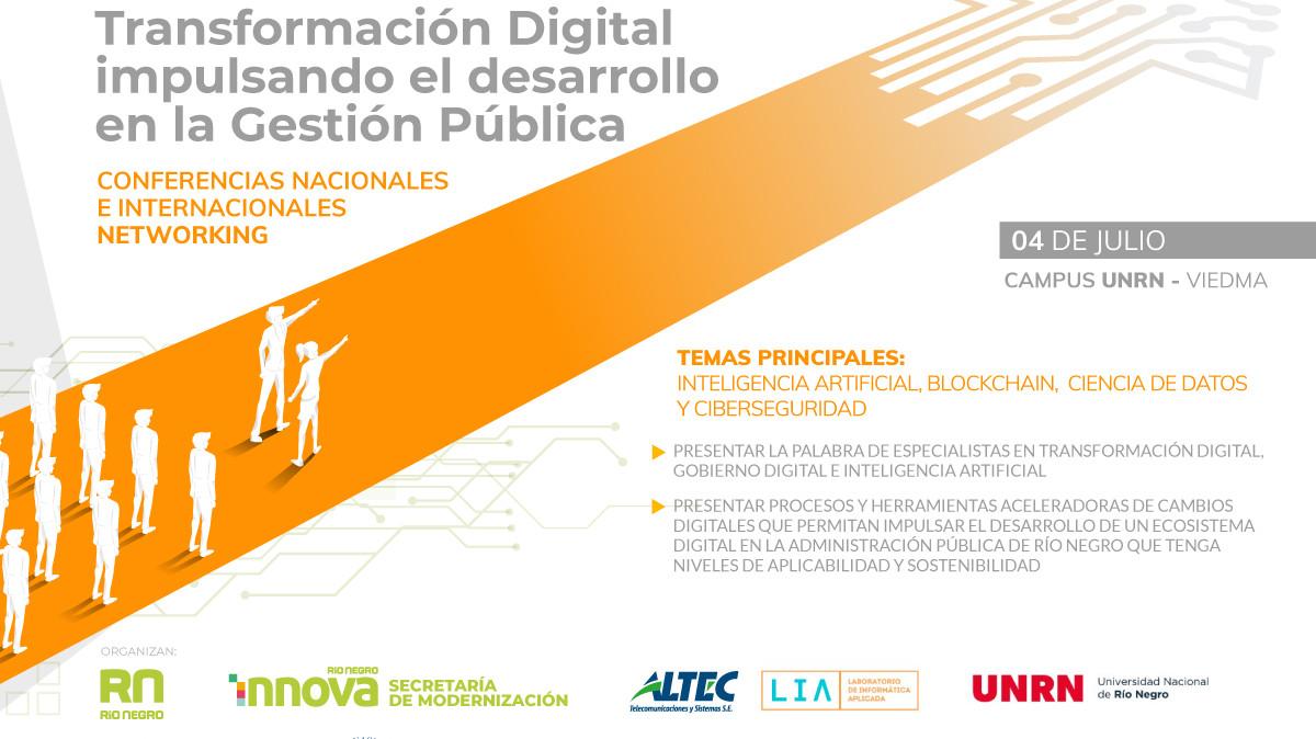 El objetivo del encuentro es presentar procesos y herramientas aceleradoras de cambios digitales que permitan impulsar el desarrollo de un ecosistema digital en la Administración Pública de Río Negro que tenga niveles de aplicabilidad y sostenibilidad. A lo largo de la jornada, distintos especialistas abordarán temáticas vinculadas con la transformación digital, Gobierno digital, blockchain, ciberseguridad e inteligencia artificial. Asimismo, el encuentro propone avanzar en el camino de la educación y aplicación para la transformación digital con valores, en el campo de la Administración Pública.