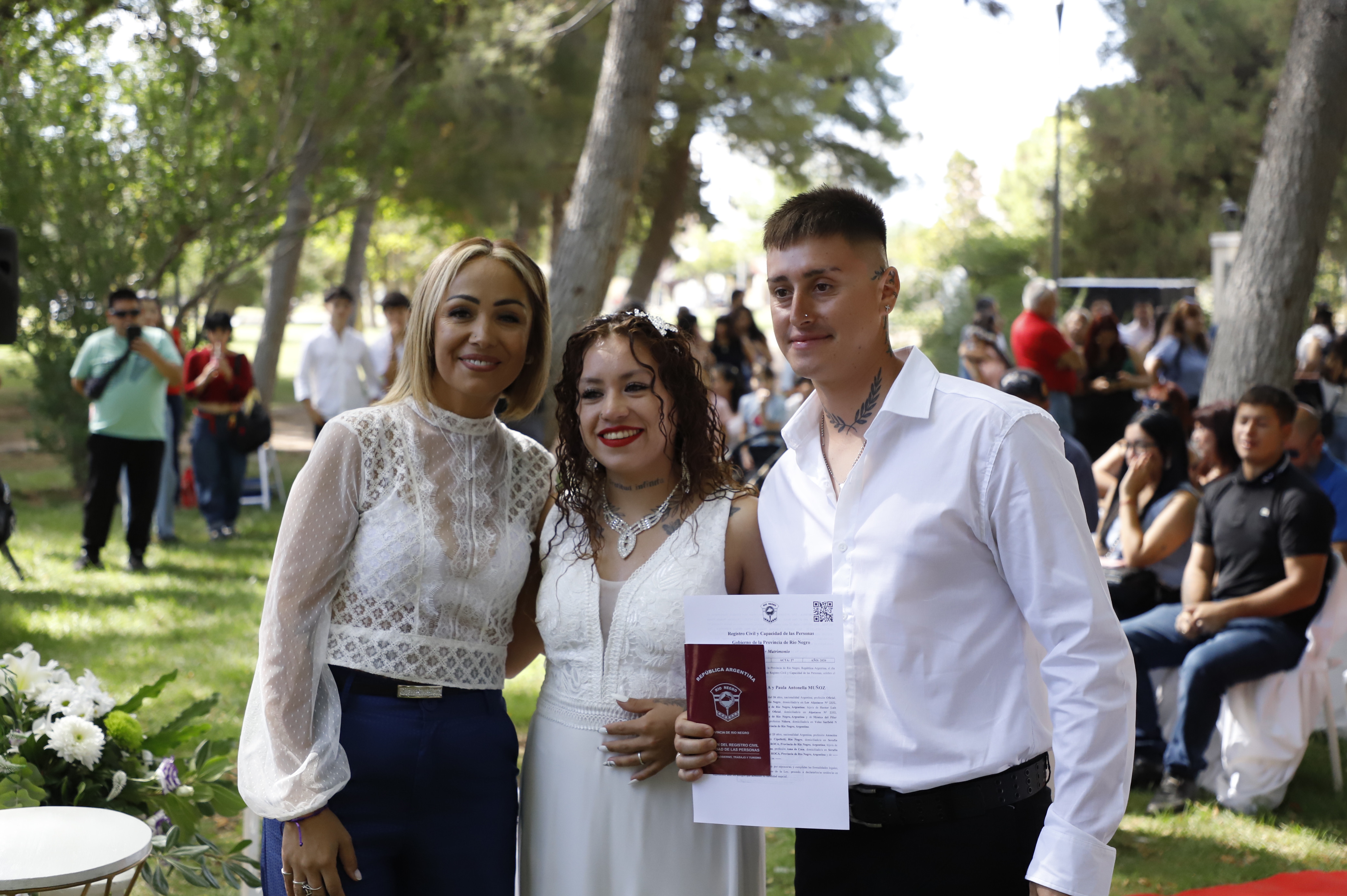 En Cipolletti, más de 20 parejas celebraron su unión en una emotiva ceremonia realizada en el Parque Rosauer, rodeadas de familiares, amistades y vecinos que se acercaron a compartir este día tan especial.