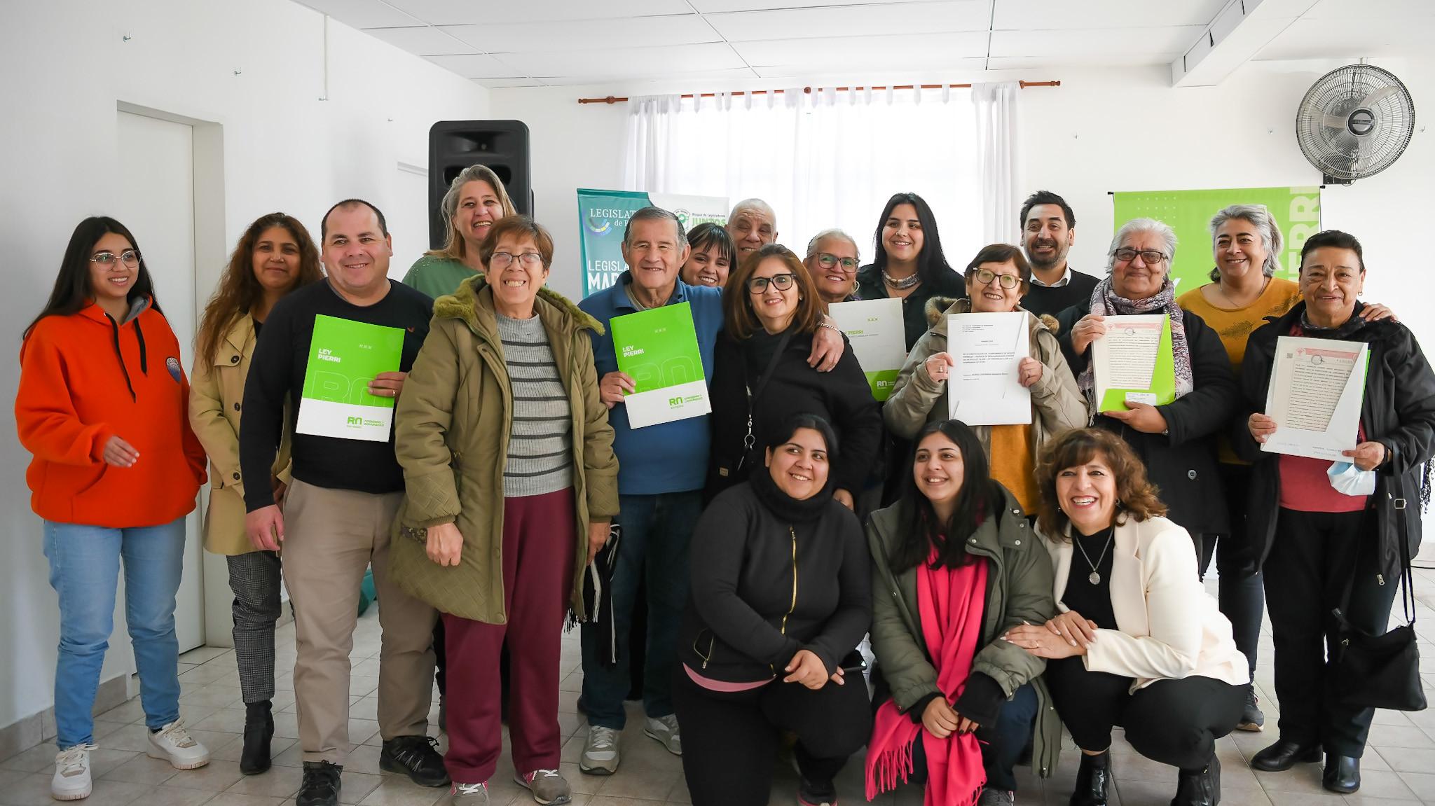 El ministro de Gobierno y Comunidad, Mariano Ferrari junto al intendente, Miguel Petricio hicieron entrega de 12 nuevas escrituras a familias beneficiarias de Mainqué a través del programa provincial “Ley Pierri”. En la localidad ya son más de 70 las y los vecinos que lograron acceder a la escritura definitiva.